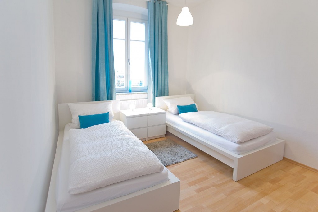Zweites Schlafzimmer mi 2 Einzelbetten.