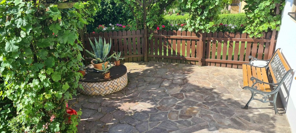 Im UG gibt es ein weiteres Schlafzimmer mit Bad. Die Gäste können die Terrasse und den gepflegten Garten mitbenutzen.