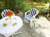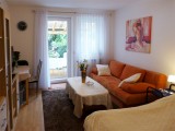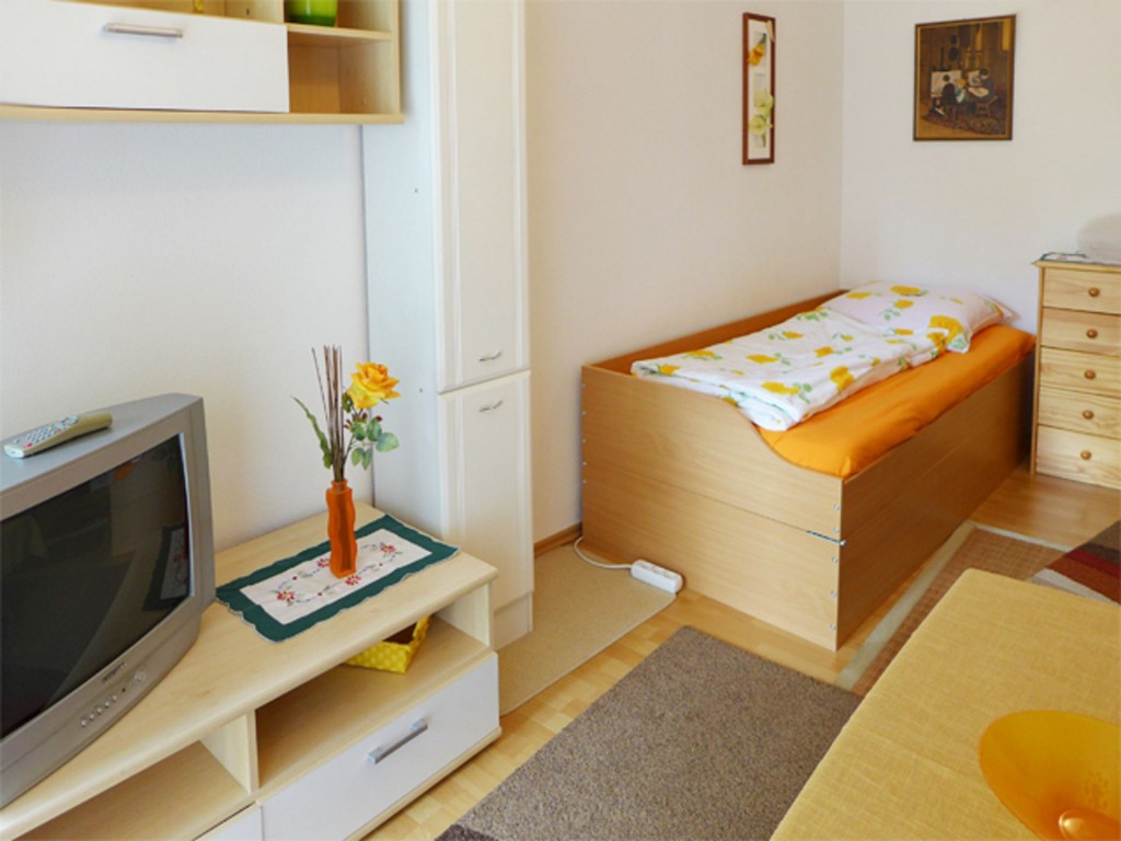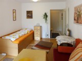 Das Einzelbett ist ausziehbar und hat zwei 90 cm breite Matratzen, die Schlafcouch ist 140 cm breit und eine Klappliege stehen auch zur Verfügung. Das Apartment ist für max. 4 Personen geeignet.