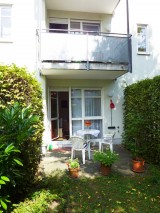 frisch renoviertes Bad mit Dusche, WC, TV, überdachte Terrasse, mehrere Supermärkte über der Straße,