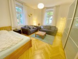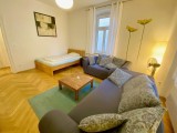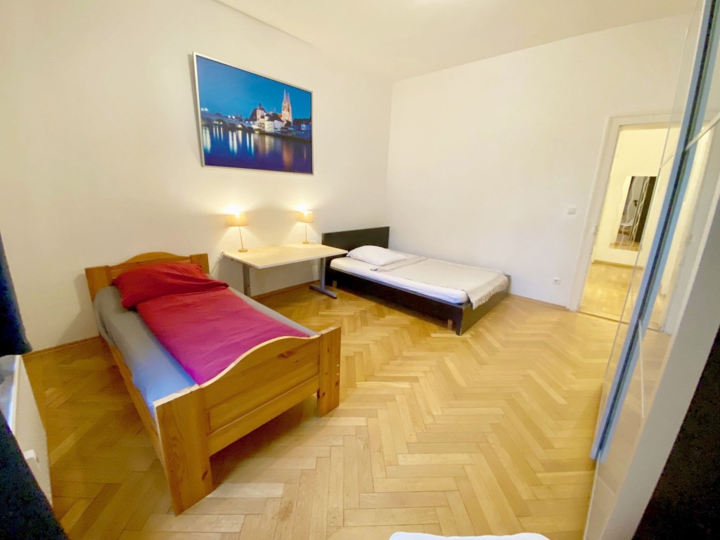 Die Wohnung SW03d ist im 1. OG mit den Fenstern nach Süden auf die ruhige Zollerstrasse. Es gibt 2 Schlafzimmer, eines davon hat eine Couch und dient damit zugleich als Wohnzimmer.