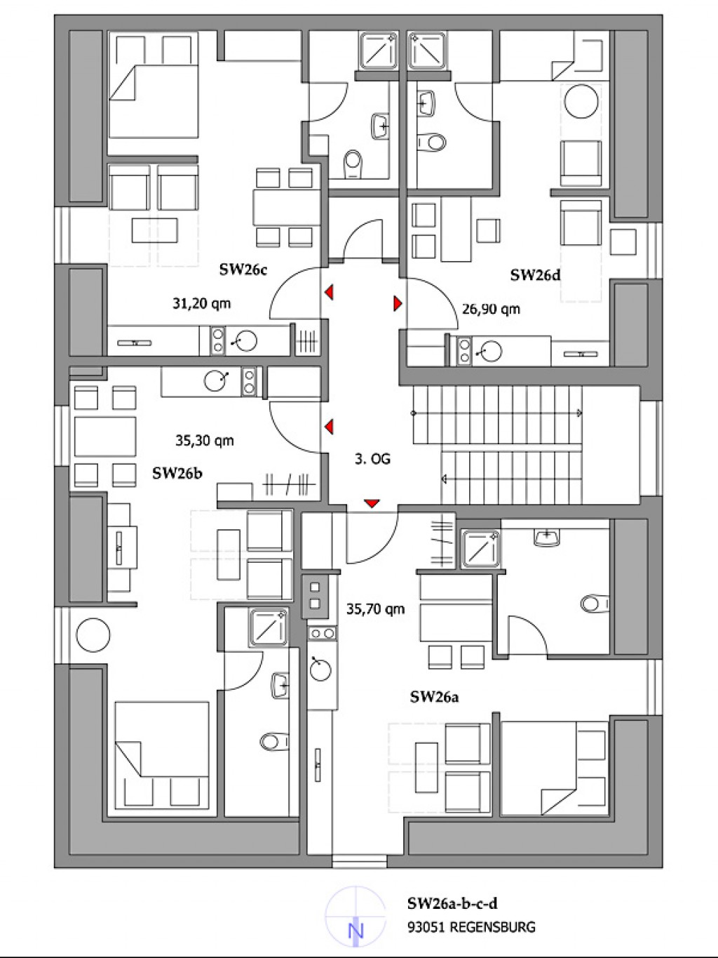 3. Stock, neu möbliert mit Wohn-Ess-Kochbereich und abgetrenntem Schlafbereich.