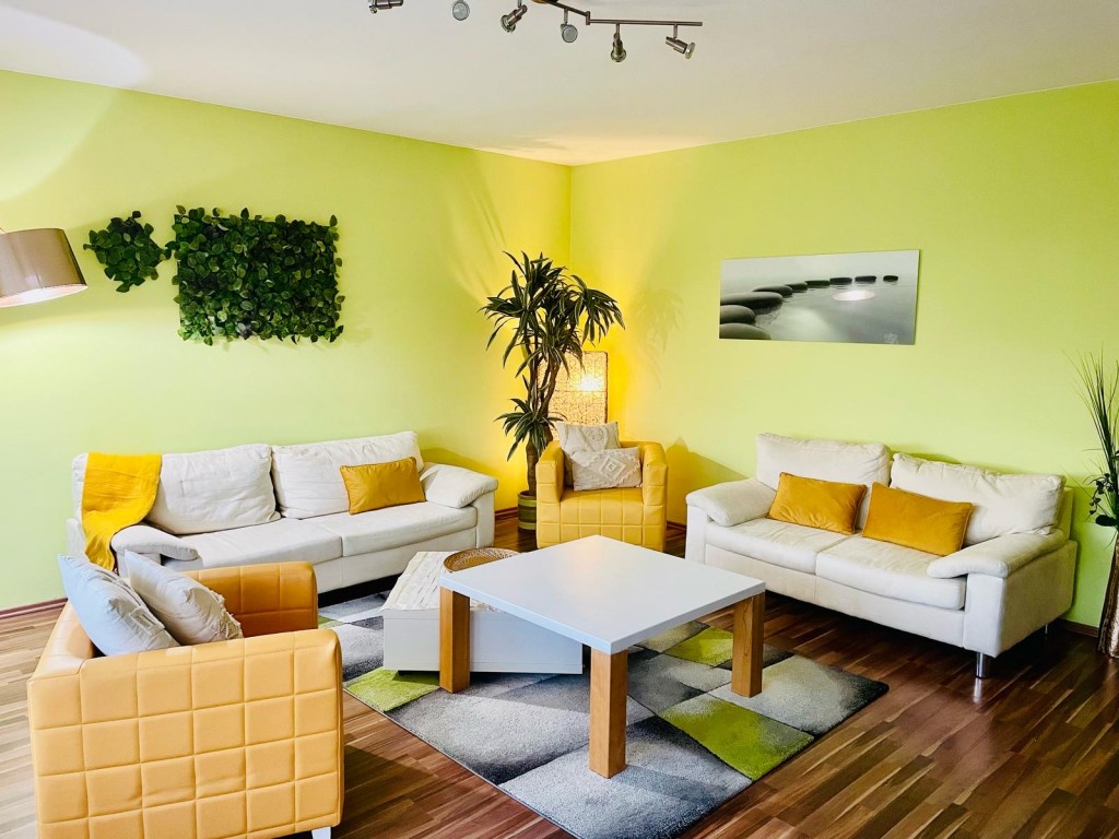 Farbenfrohe, fröhliche Wohlfühlwohnung auf 90 m² mit Schlafzimmer, Wohnzimmer, Küche, Bad.